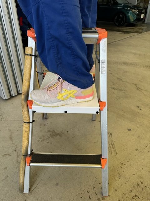 昨年の年末に脚立に乗ってコーティング作業をしていたスタッフが、