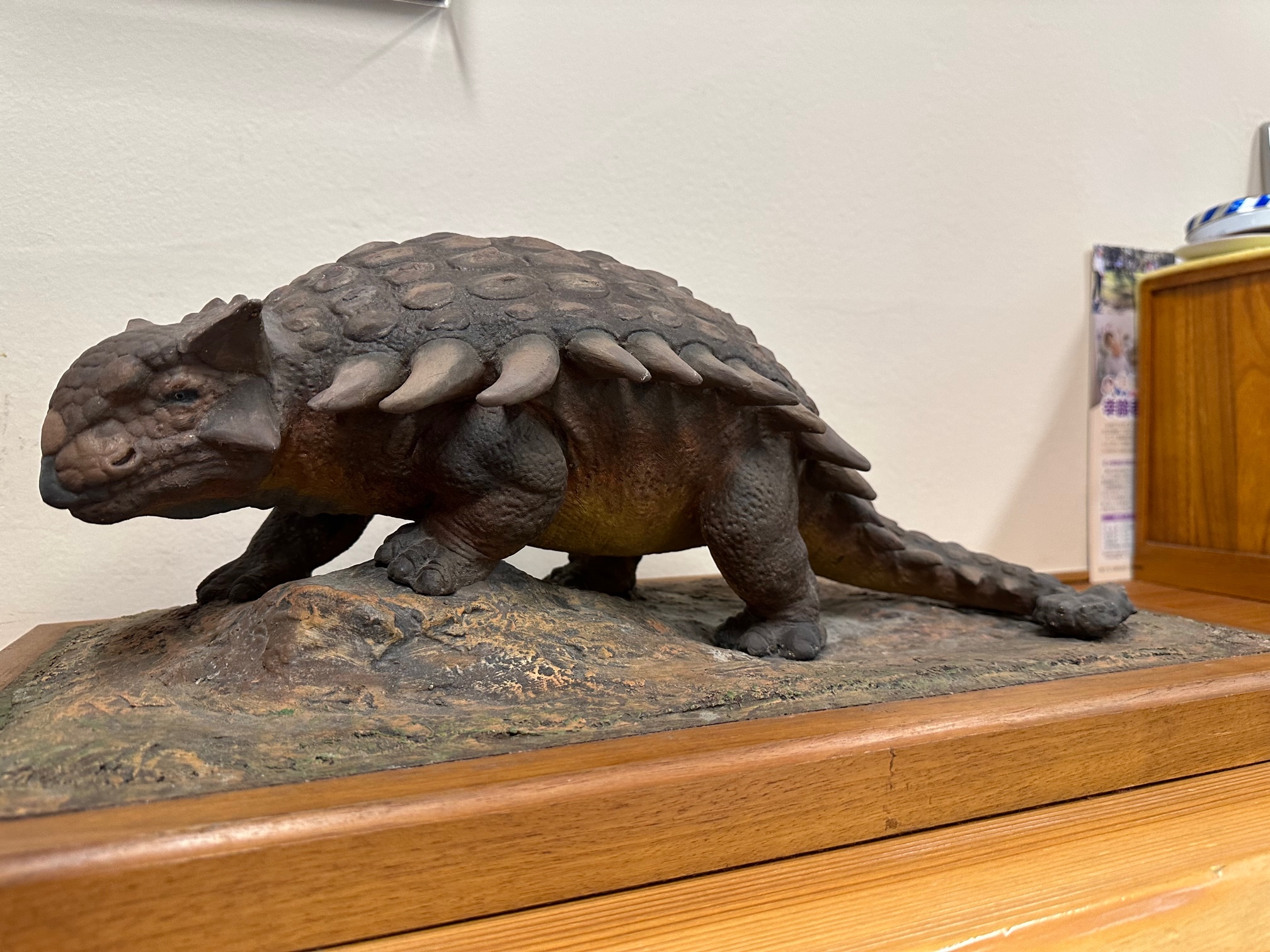 イギリスの収集家が放出した「アンキロサウルス」の木彫り(多分)の模型で、