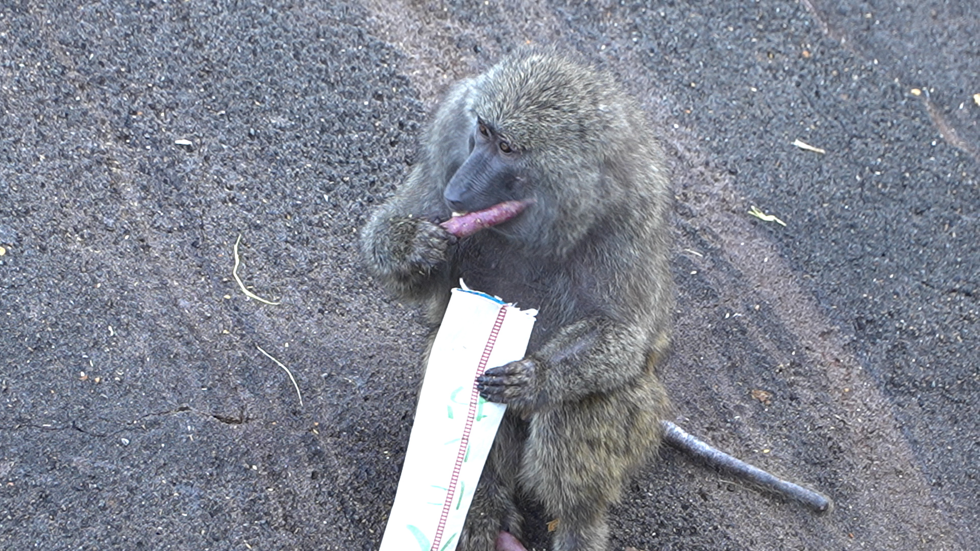 おやつ入りのお年玉もらうヒヒ