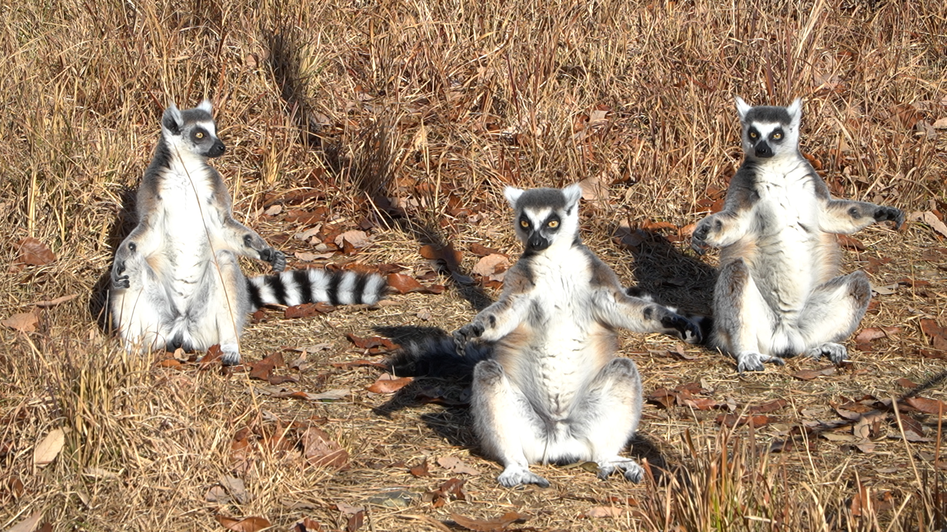 初日の出を浴びるワオキツネザル