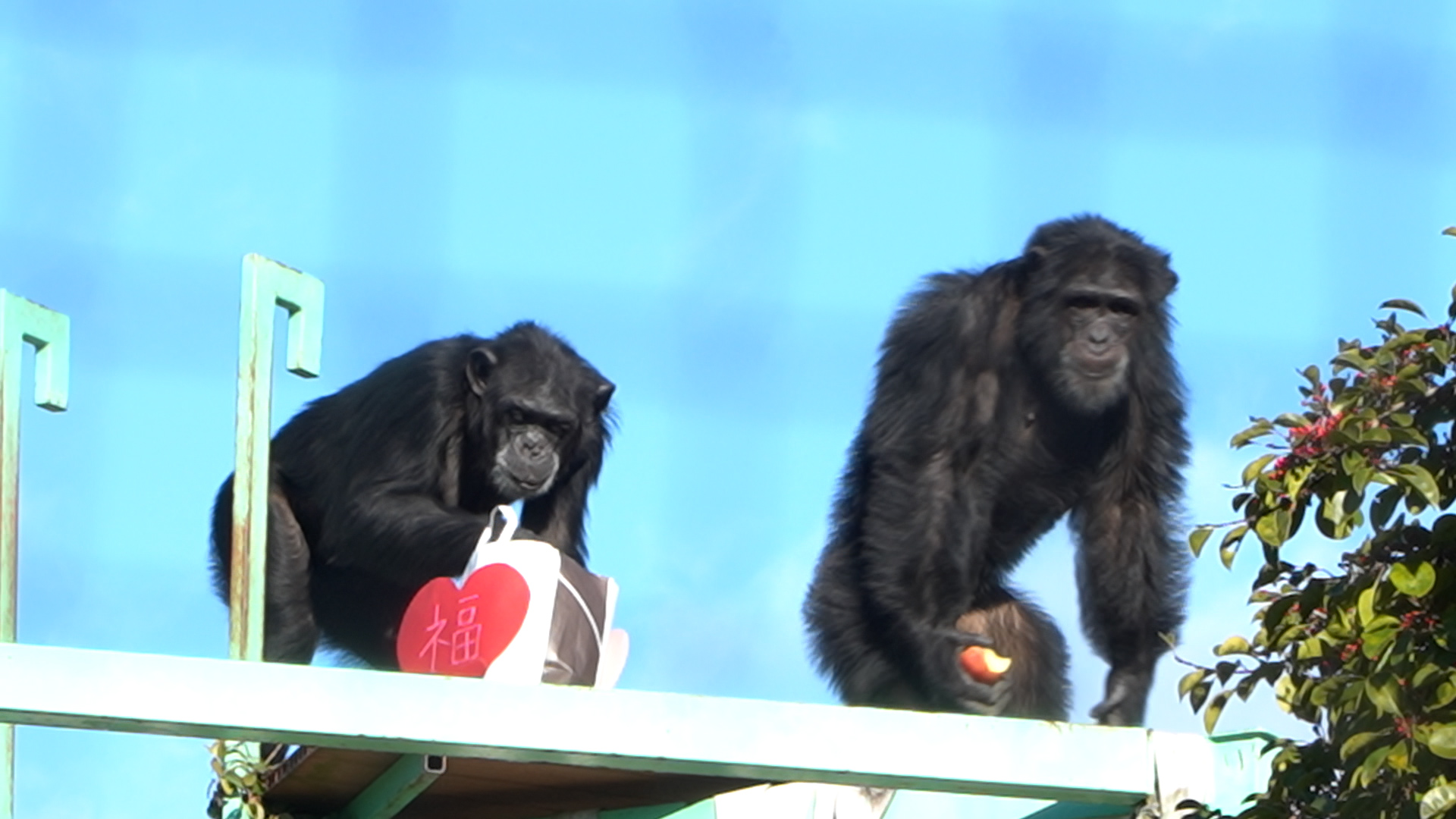福袋をもらったチンパンジー