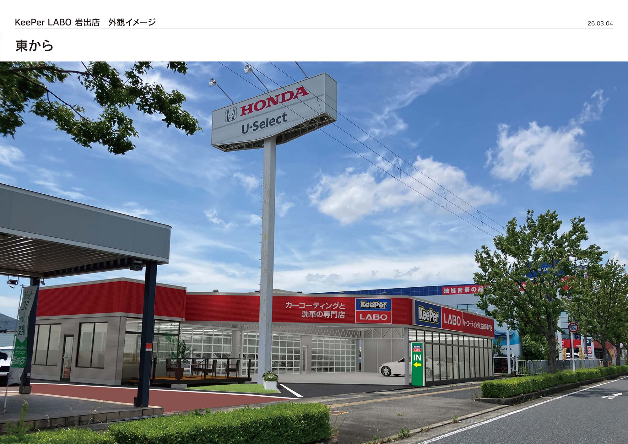 大きなホンダディーラーに隣接して建ちます。