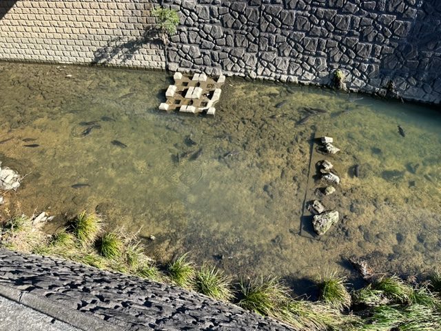 石川橋店の風物詩、山崎川の鯉
