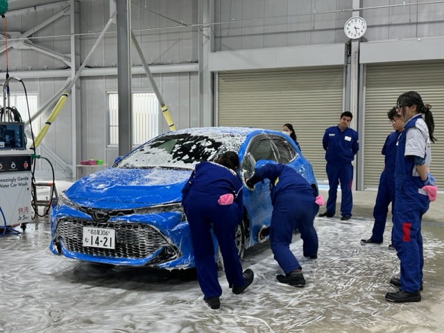 研修はまず純水手洗い洗車。